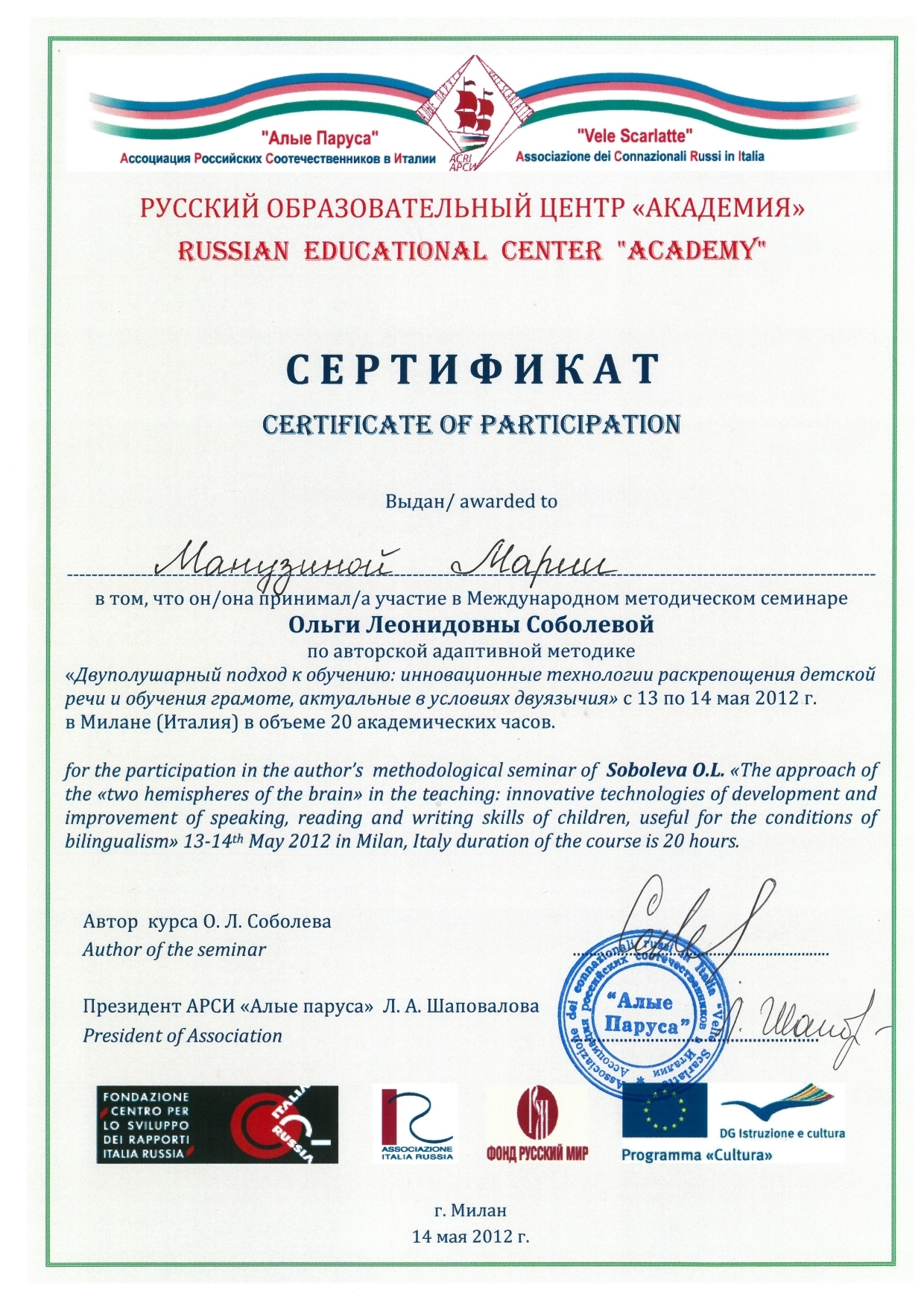 Годовой курс включает 30 учебных недель (30 занятий/45 учебных часов), длится 9 месяцев, начинается в сентябре и завершается в мае. Предусмотрены каникулы. После успешного окончания курса, ученики переходят в следующий класс.